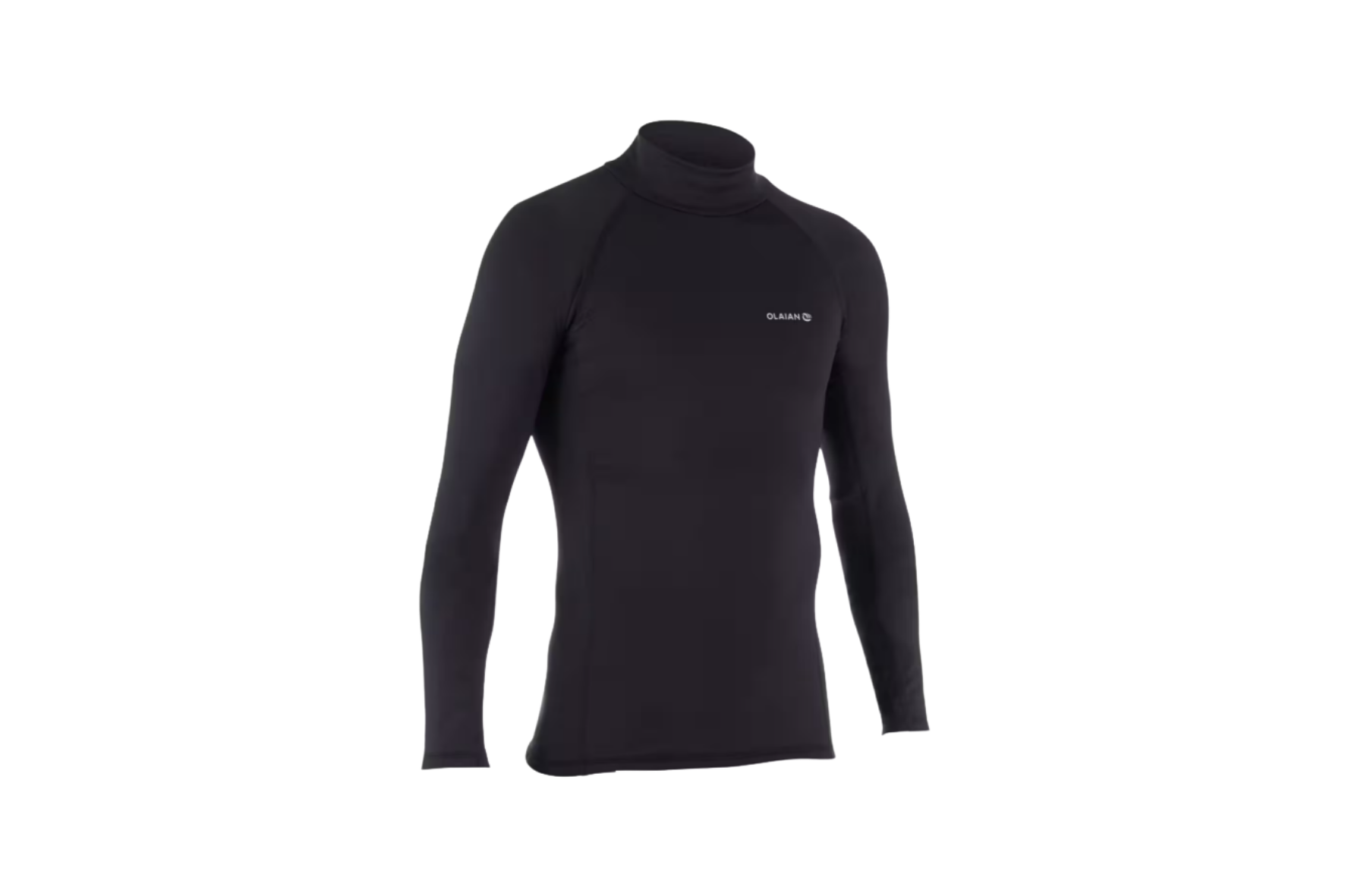 Ik probeerde ontzettend veel truitjes uit en kwam tot de vaststelling dat de thermische rashguard van de Decathlon, voor € 20, de beste is. Het wordt verkocht als herenmodel, maar het past evengoed voor vrouwen (ongeacht de buik- en/of borstomtrek). De maat is betrouwbaar; waardoor je jouw gekende maattabel kunt volgen. Idealiter sluit de shirt goed aan op het lichaam, waardoor er geen water kan tussenkomen. De binnenkant die bestaat uit fleece zorgt voor een zachte en knusse ervaring in het water.